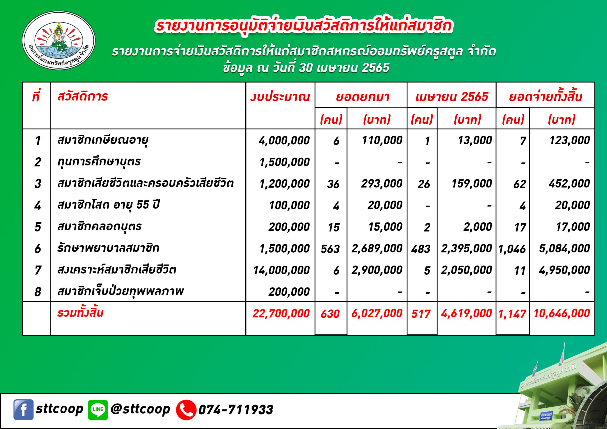 หน้าแรก มอบเงินเกี่ยวกับสวัสดิการ รายงานการจ่ายเงินสวัสดิการให้แก่สมาชิก ข้อมูล ณ วันที่ 30 เมษายน 2565 มอบเงินเกี่ยวกับสวัสดิการ รายงานการจ่ายเงินสวัสดิการให้แก่สมาชิก ข้อมูล ณ วันที่ 30 เมษายน 2565 9 พฤษภาคม 2022 1240 0 แบ่งปัน FacebookTwitterPinterestWhatsApp