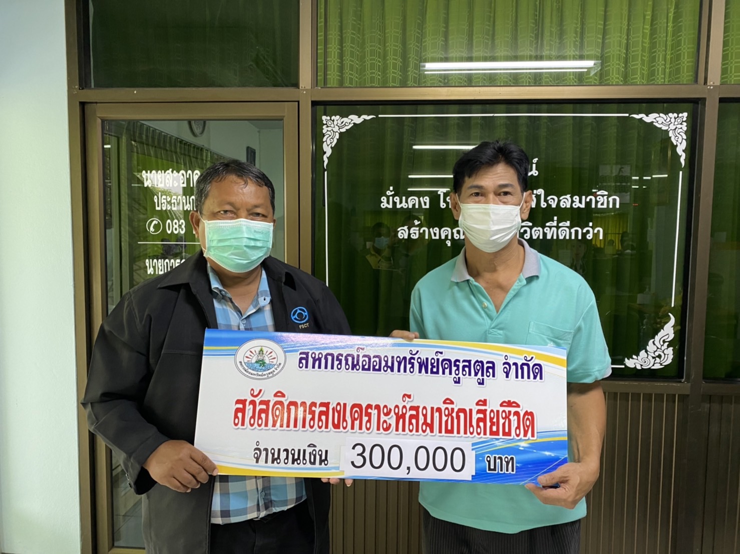 วันที่ 11 พฤษภาคม 2565 สหกรณ์ออมทรัพย์ครูสตูล จำกัด โดย นายการุณย์ ติณรัตน์ เลขานุการ แทนประธานสหกรณ์ออมทรัพย์ครูสตูล จำกัด มอบเงินสวัสดิการสงเคราะห์สมาชิกเสียชีวิต ให้แก่ ครอบครัว นายนิรันดร์ ธรรมบำรุง จำนวนเงิน 300,000 บาท ณ สำนักงานสหกรณ์ออมทรัพย์ครูสตูล จำกัด ชั้น 2