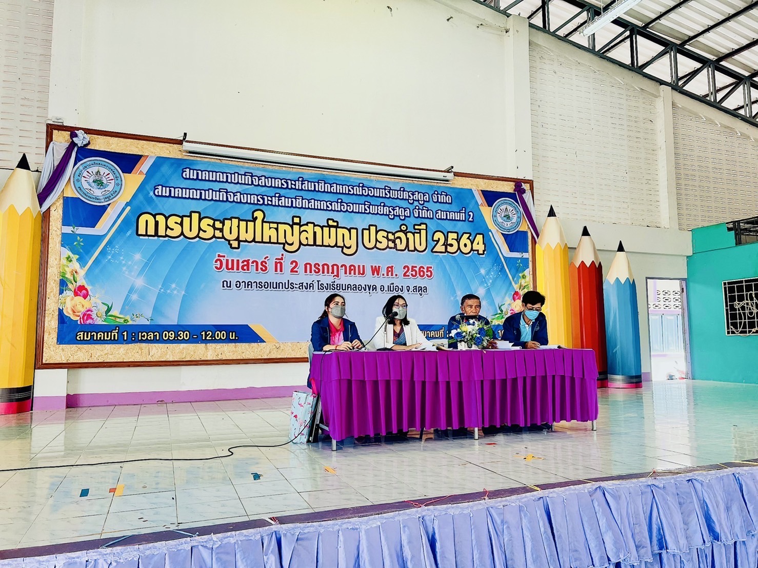 ด้วยสมาคมฌาปนกิจสงเคราะห์สมาชิกสหกรณ์ออมทรัพย์ครูสตูล จำกัด สมาคมฌาปนกิจสงเคราะห์ฯ ที่ 1 และ 2 ได้จัดประชุมใหญ่สามัญประจำปี 2564 ในวันเสาร์ ที่ 2 กรกฎาคม 2565 ณ โรงเรียนบ้านคลองขุด อ.เมือง จ.สตูล โดยมีนายกสมาคมฌาปนกิจและกรรมการสมาคมของทั้ง 2 สมาคม นายทะเบียนสมาคม ประธานและกรรมการสหกรณ์ออมทรัพย์ครูสตูล จำกัด รวมถึงสมาชิกสมาคมที่ 1 จำนวน 150 คน และสมาคมที่ 2 จำนวน 120 คน