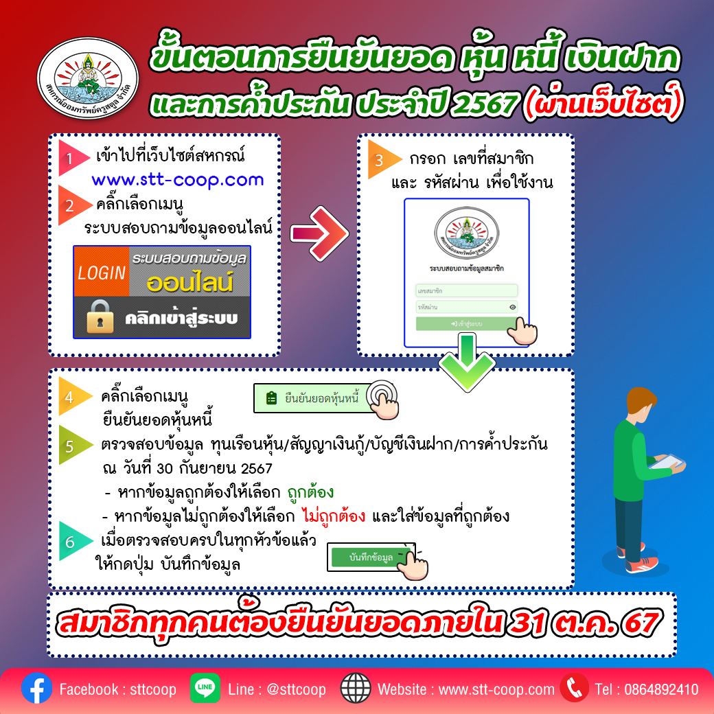 หน้าแรก ข่าวประชาสัมพันธ์ ขั้นตอนการยืนยันยอด หุ้น หนี้ เงินฝาก และการค้ำประกัน ประจำปี 2567