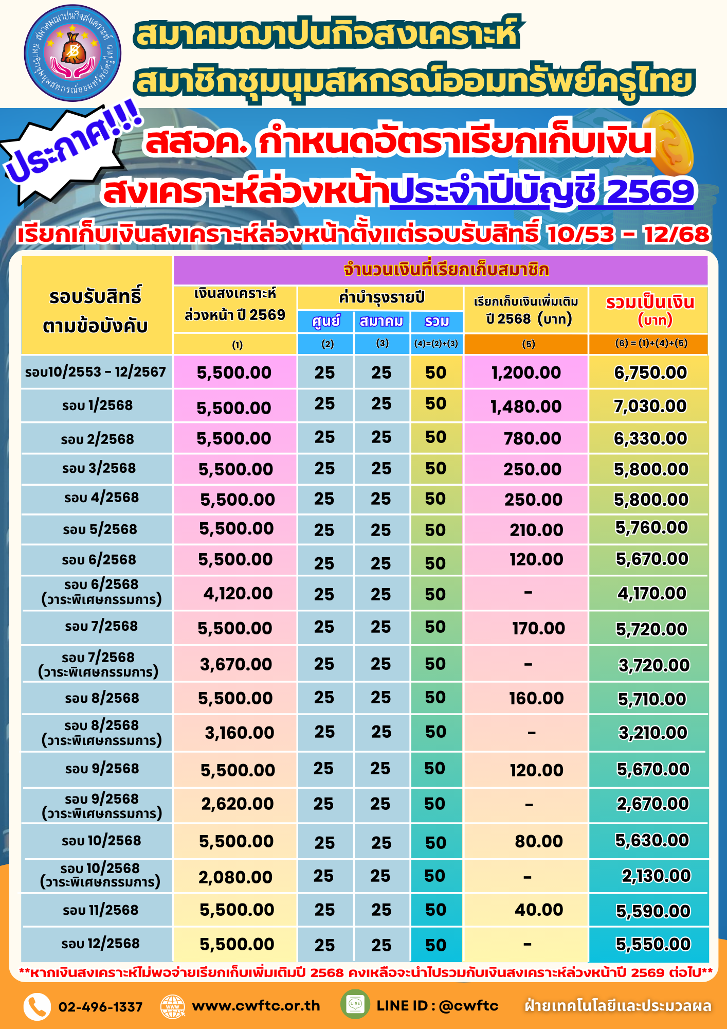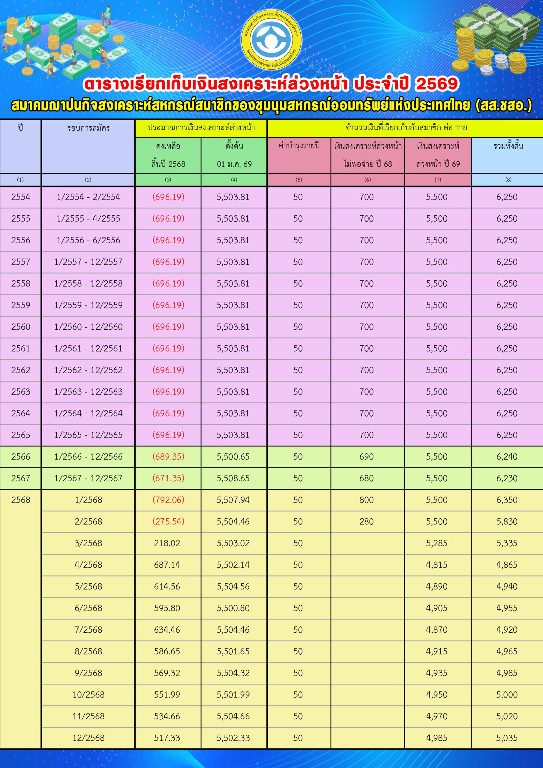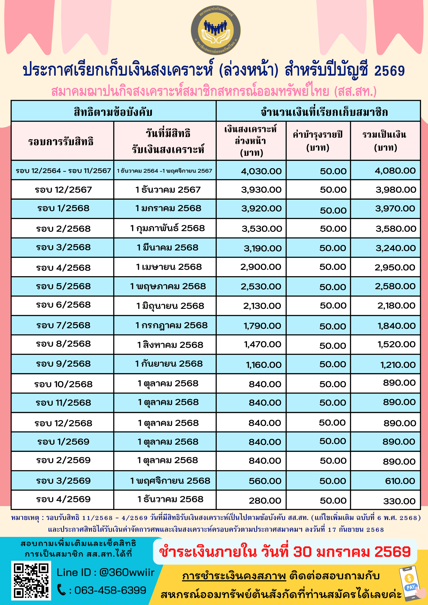 อ่านรายละเอียดที่นี่ >>ตารางเรียกเก็บเงินสงเคราะห์ สส.สท. ประจำปี 2569