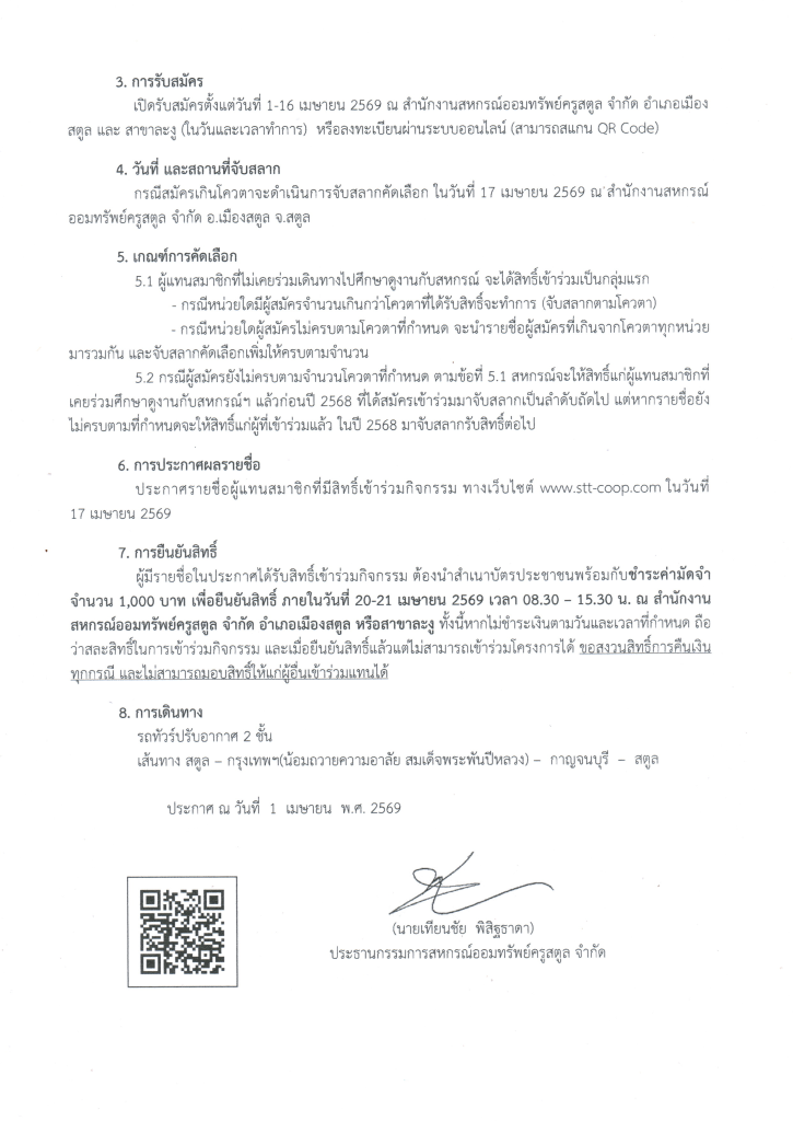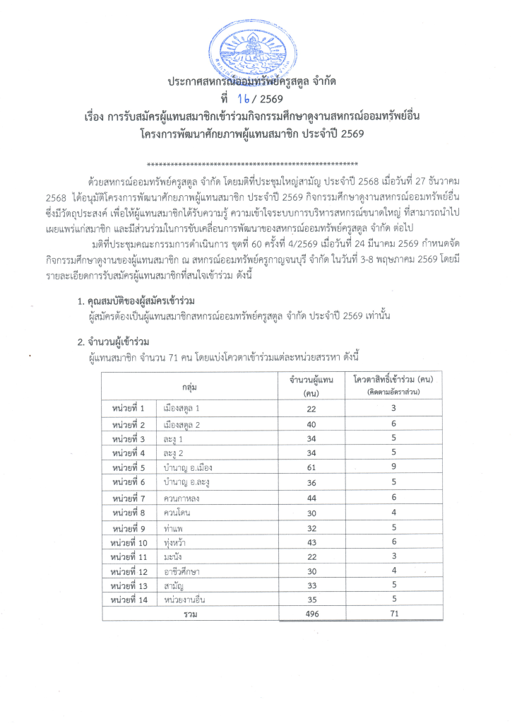 ดาวน์โหลดใบสมัครเข้าร่วม คลิ๊ก >> ใบสมัครเข้าร่วมโครงการพัฒนาศักยภาพผู้แทนสมาชิก ประจำปี 2569