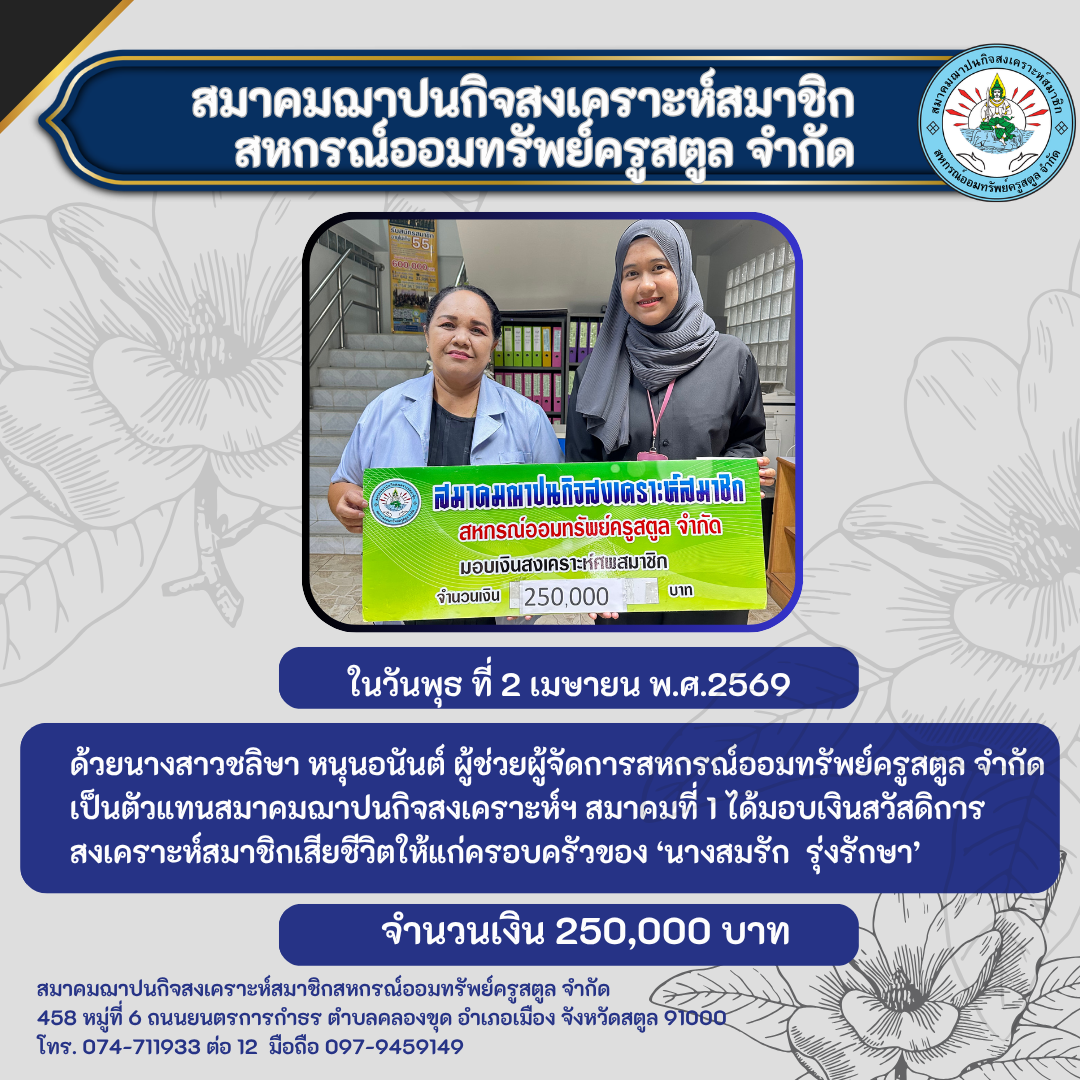 หน้าแรก มอบเงินเกี่ยวกับสวัสดิการ มอบเงินสวัสดิการสงเคราะห์กรณีสมาชิกเสียชีวิต ให้แก่ครอบครัวของ “นางสมรัก รุ่งรักษา” มอบเงินเกี่ยวกับสวัสดิการ มอบเงินสวัสดิการสงเคราะห์กรณีสมาชิกเสียชีวิต ให้แก่ครอบครัวของ “นางสมรัก รุ่งรักษา” 22 เมษายน 2026 21 0 แบ่งปัน FacebookTwitterPinterestWhatsApp