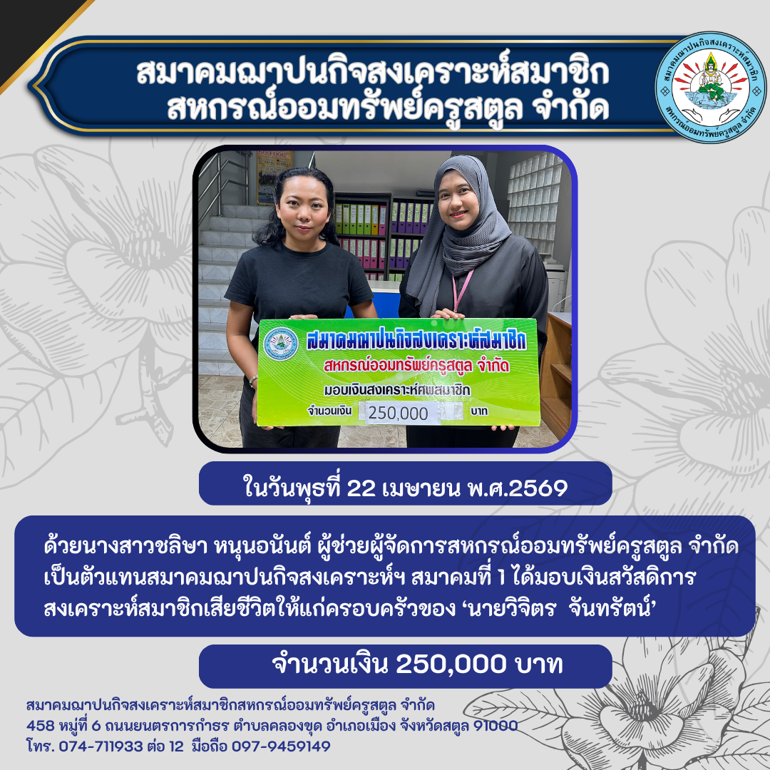 หน้าแรก มอบเงินเกี่ยวกับสวัสดิการ มอบเงินสวัสดิการสงเคราะห์กรณีสมาชิกเสียชีวิต ให้แก่ครอบครัวของ “นายวิจิตร จันทรัตน์” มอบเงินเกี่ยวกับสวัสดิการ มอบเงินสวัสดิการสงเคราะห์กรณีสมาชิกเสียชีวิต ให้แก่ครอบครัวของ “นายวิจิตร จันทรัตน์” 22 เมษายน 2026 28 0 แบ่งปัน FacebookTwitterPinterestWhatsApp