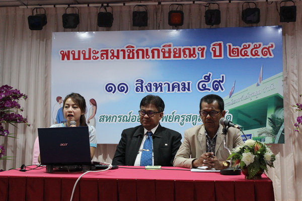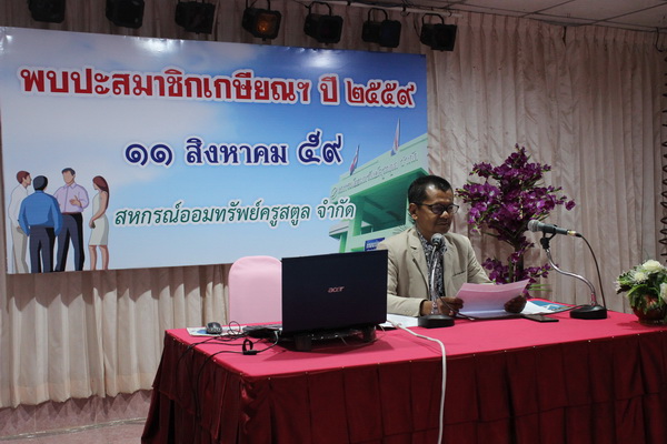 สหกรณ์ออมทรัพย์ครูสตูล จำกัด นำโดยนายปรีชา ดุลยการัณย์ เป็นประธาน ในการจัดกิจกรรมพบปะสมาชิกเกษียณอายุราชการ ประจำปี 2559 วันที่ 11 สิงหาคม 2559 ณ นกน้ำรีสอร์ท ตำบลควนโพธิ์ อำเภอเมือง จังหวัดสตูล