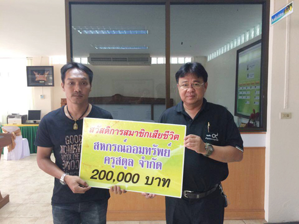 สหกรณ์ออมทรัพย์ครูสตูล จำกัด โดย นายอัครินทร์ กุลวัฒน์ธนศิริ ผู้จัดการสหกรณ์ มอบเงินสวัสดิการสมาชิกเสียชีวิต ให้แก่ ครอบครัว นางนารี สนิทมัจโร จำนวนเงิน 200,000 บาท วันที่ 9 มีนาคม 2560 ณ สำนักงานสหกรณ์ออมทรัพย์ครูสตูล จำกัด ชั้น 1