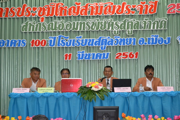 สหกรณ์ออมทรัพย์ครูสตูล จำกัด จัดการประชุมใหญ่สามัญ ประจำปี 2560 ในวันอาทิตย์ที่ 11 มีนาคม 2561 เวลา 08.00 น.ณ หอประชุม 100 ปี โรเงรียนสตูลวิทยา อำเภอเมืองสตูล จังหวัดสตูล โดยมี นายอดินันท์ ปากบารา ผู้ช่วยรัฐมนตรีประจำนายกรัฐมนตรี เป็นประธานในพิธีเปิด ซึ่งมีผู้แทนสมาชิก ตัวแทนสมาชิก ผู้เข้าร่วมประชุม ทั้งหมด ประมาณ 300 กว่าคน เข้าร่วมการประชุม
