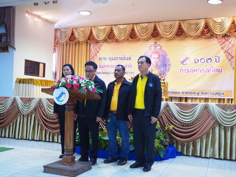 วันที่ 26 กุมภาพันธ์ 2562 ณ ห้องประชุมอาคารธรรมาภิบาล เทศบาลกำแพง อ.ละงู จ.สตูล นายวงศกร นุ่นชูคันธ์ รองผู้ว่าราชการจังหวัดสตูล เป็นประธานเปิดงานพร้อมอ่านสารนายกรัฐมนตรีเนื่องในโอกาสวันสหกรณ์แห่งชาติ โดยมีนายนายดำริ ทองพราว ประธานจัดงานสหกรณ์แห่งชาติจังหวัดสตูล กล่าวรายงานและมีนายไพฑูรย์ ชนะชู สำนักงานสหกรณ์จังหวัดสตูล , สำนักงานตรวจบัญชีสหกรณ์สตูล ,หัวหน้าส่วนราชการสังกัดกระทรวงเกษตรและสหกรณ์ และเจ้าหน้าที่ ตัวแทนสหกรณ์ในจังหวัดสตูลร่วมกันจัดงานวันสหกรณ์แห่งชาติจังหวัดสตูลขึ้นมีตัวแทนเข้าร่วมกว่า 300 คน