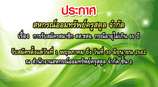 อ่านรายละเอียดที่นี่>>ประกาศรับสมัครสมาชิกกรณีพิเศษไม่เกิน65ปี-ฉบับแก้ไข