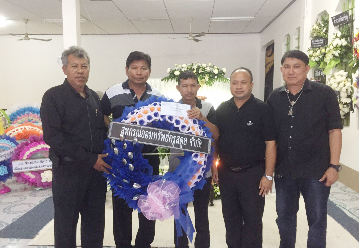 วันที่ 4 มิถุนายน 2562 สหกรณ์ออมทรัพย์ครูสตูล จำกัด โดยนายสมนึก ศรีนคร รองประธาน คนที่ 2 มอบเงินฌาปนกิจสงเคราะห์ศพครอบครัวสมาชิกเสียชีวิตให้แก่ นายธีธัช ชาตโร จำนวนเงิน 5,000 บาท พร้อมพวงหรีด ณ วัดอ่างทอง ตำบลทุ่งหวัง อำเภอเมือง จังหวัดสงขลา