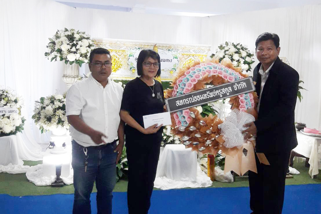 วันที่ 5 กรกฎาคม 2562 สหกรณ์ออมทรัพย์ครูสตูล จำกัด โดยนายสมนึก ศรีนคร รองประธาน คนที่ 2 มอบเงินฌาปนกิจสงเคราะห์ศพครอบครัวสมาชิกเสียชีวิตให้แก่ นางอนุชิดา พันธนียะ จำนวนเงิน 5,000 บาท พร้อมพวงหรีด ณ วัดทะเลปัง อำเภอหัวไทร จังหวัดนครศรีธรรมราช
