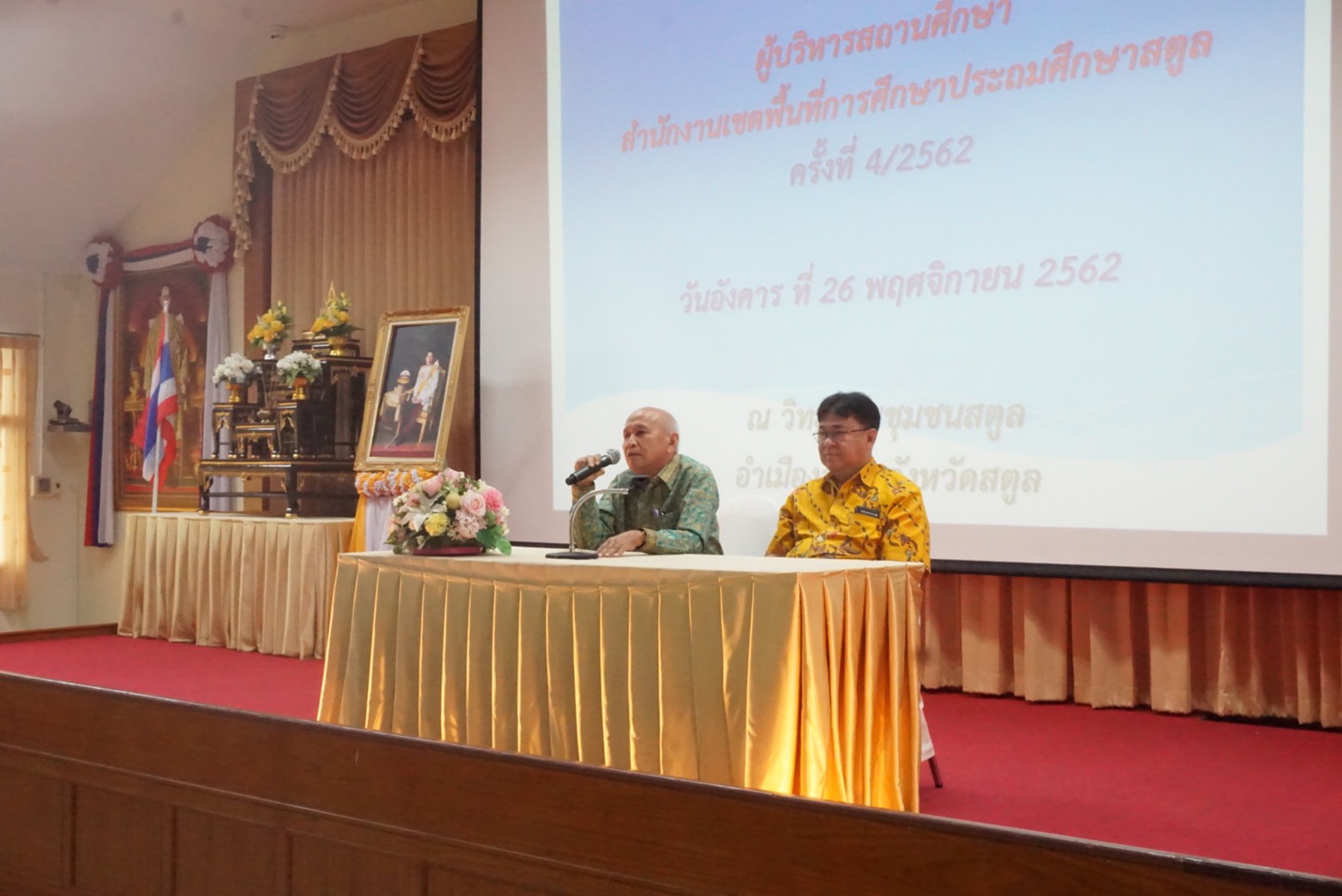 วันที่ 26 พฤศจิกายน 2562 สหกรณ์ออมทรัพย์ครูสตูล จำกัด โดยนายคะแนน ประทีปวัฒนพันธ์ รองประธาน และ นายอัครินทร์ กุลวัฒน์ธนศิริ ผู้จัดการ เข้าร่วมการประชุมผู้บริหารสถานศึกษา สำนักงานเขตพื้นที่การศึกษาประถมศึกษาสตูล เพื่อประชาสัมพันธ์แจ้งข่าวสารสวัสดิการต่างๆ ของสหกรณ์ฯ ณ วิทยาลัยชุมชนสตูล อำเภอเมือง จังหวัดสตูล
