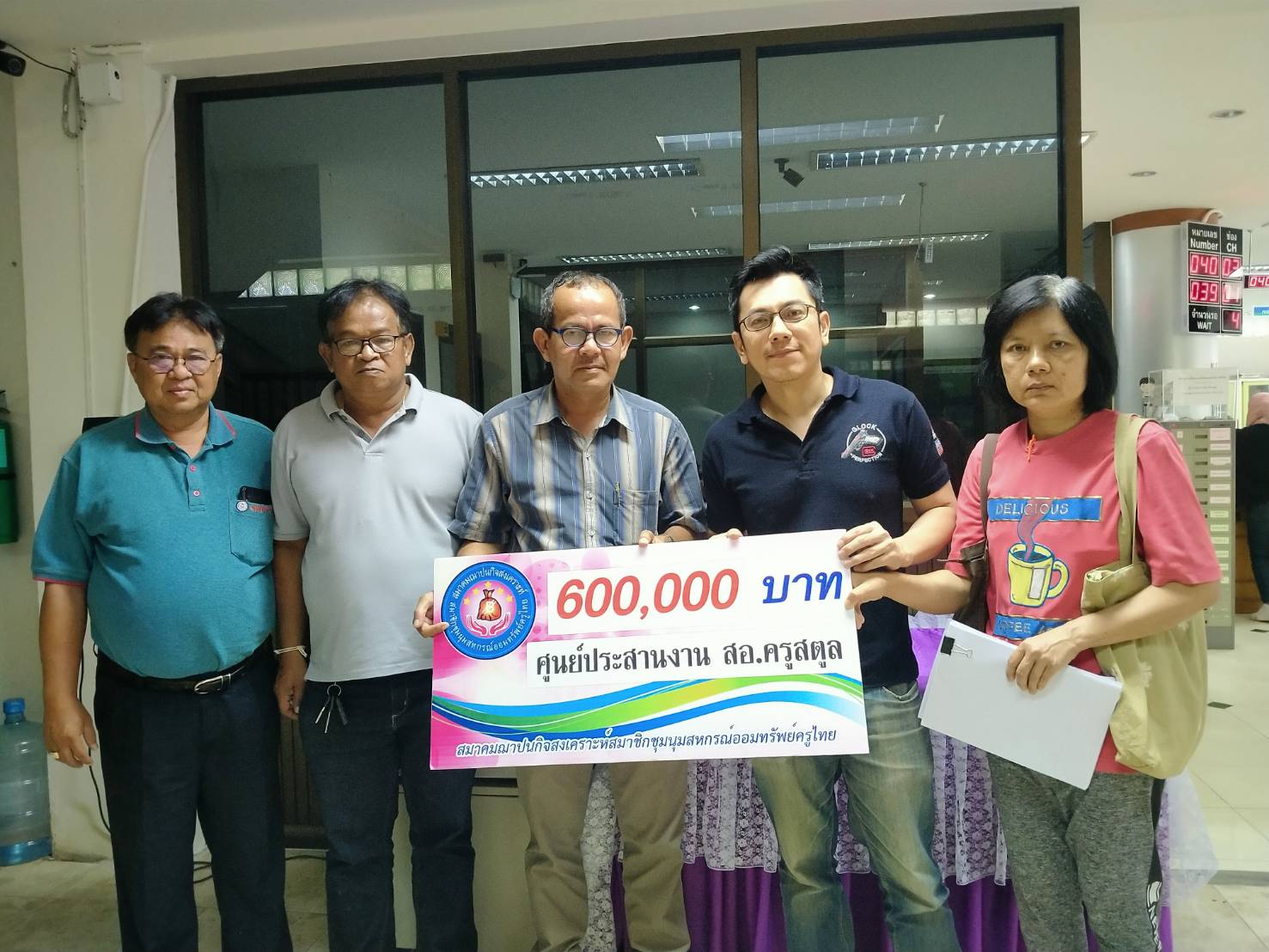 วันที่ 28 กุมภาพันธ์ 2563 ศูนย์ประสานงาน สหกรณ์ออมทรัพย์ครูสตูล จำกัด โดยนายนพดล ยังสมัน รองประธาน นายวิชาญ สำเภาเงิน กรรมการ และ นายอัครินทร์ กุลวัฒน์ธนศิริ ผู้จัดการ มอบเงินสงเคราะห์ศพ สมาคมฌาปนกิจสงเคราะห์สหกรณ์สมาชิกของชุมนุมสหกรณ์ออมทรัพย์แห่งประเทศไทย ให้แก่ ครอบครัว นางลำยอง อึ้งสกุล จำนวนเงิน 600,000 บาท ณ สำนักงานสหกรณ์ออมทรัพย์ครูสตูล จำกัด อำเภอเมือง จังหวัดสตูล