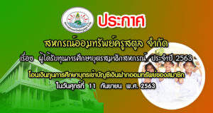 ผู้ได้รับทุนการศึกษาบุตรสมาชิกสหกรณ์ ประจำปี 2563